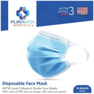 PuraVita Medical 3ply Disposable Masks | ATSM Level-3
